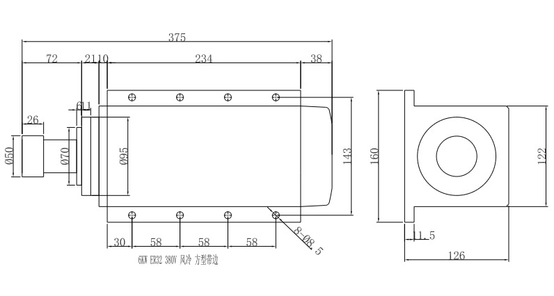 6KW/ER32 /380V 方型带边风冷电机